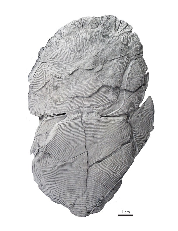 Dorsal view of the dermal armor of the newly identified fossil fish species, Phyllolepis thomsoni. Credit: Academy of Natural Sciences of Drexel University.